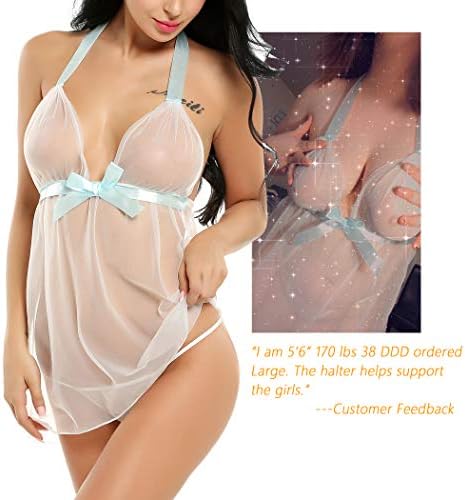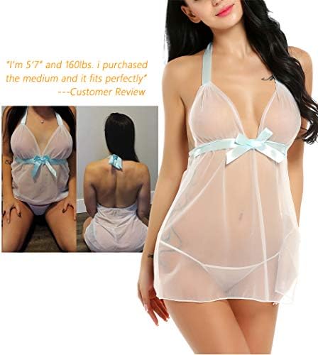 Avidlove lingerie mesh babydoll featuring a plunging deep V neck. unlined sheer cups, satin bow detailing , adjustable halter neck,backlessdesign and a match g-string. Fully adjustable halter straps give you the best comfort and fit when wornHalter Lingerie makes you more attractive on wedding night, bridal shower, honeymoon night, date nights, holiday, valentine's day, Christmas, lingerie party, anniversary, and special bedroom nights. Best lingerie gift for bride, wife or girl friendOccasions: lingerie for women, purple lingerie, red lingerie ,white lingerie, pink lingerie ,blue lingerie,mesh lingerie, babydoll lingerie, sheer lingerie dress, v neck lingerie, halter lingerie, boudoir lingerie, bridal lingerie set, women's lingerie, bridal lingerie,Package Content: 1 X Women's babydoll lingerie with a g-string.Hand washes recommended