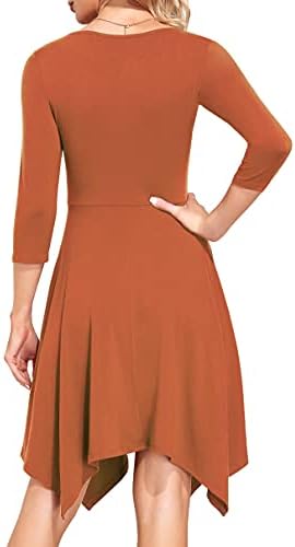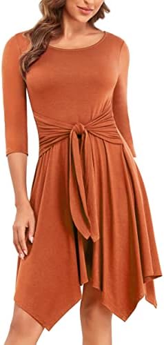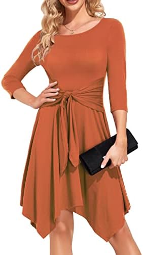 Drimmaks cotton Fall Winter dress with light weight soft stretchy fabric, perfect for any occasion.The Tied Waist is cute yet classy elements for a women dress, which perfectly to treamlines your tummy.The irregular high-low hem and swing bottom style to highlight your body curve!Drimmaks Women's Solid Color Simple Fall Dress Scoop Neck 3/4 Sleeve Swing Wedding Guest Dress