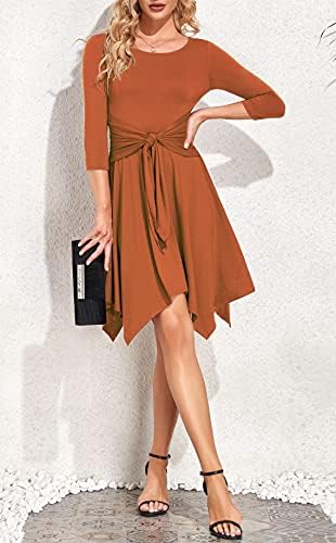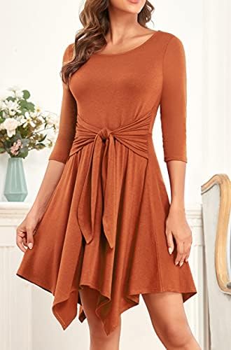 Drimmaks Women's 3/4 Sleeve Scoop Neck Tied Waist Irregular Hem Fit and Flare Cocktail Party Dress