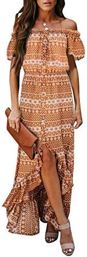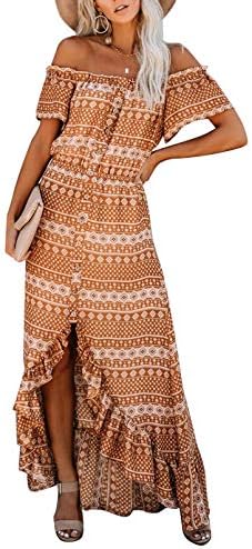 Designed with short sleeve,boho floral print,stylish ruffle trim,button down decorations,elastic high waist ,high-low ruffle hem.With this womens summer off the shoulder dresses,shows your curves and femininity.
