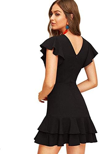 Floerns Women's V Back Inslace Layered Ruffle Hem Flutter Sleeve Dress