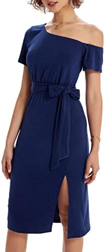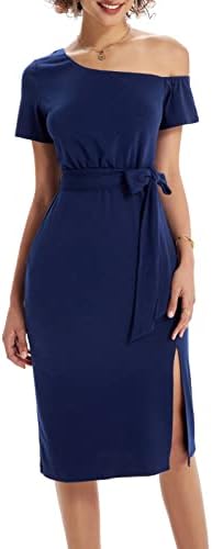 GRACE KARIN Women's Off Shoulder Cocktail Dress Short Sleeve Party Bodycon Dress with Belt Work Dress