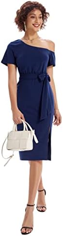 GRACE KARIN Women One Shoulder Cocktail Dress Wear to Work Dress with Belt