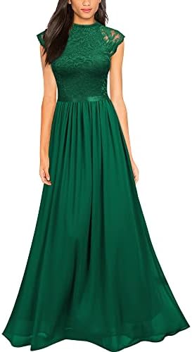 Lace Contrast Chiffon Style, Zipper On The Back,Long Dress