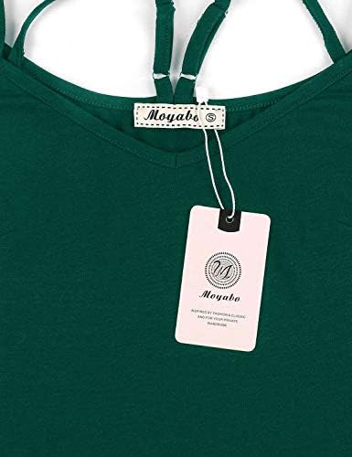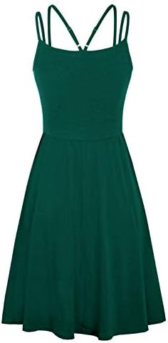 Moyabo Women's V Neck Sleeveless Floral Double Spaghetti Strap Summer Casual Swing Dress with Pockets