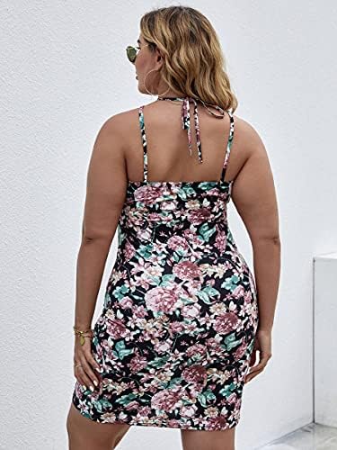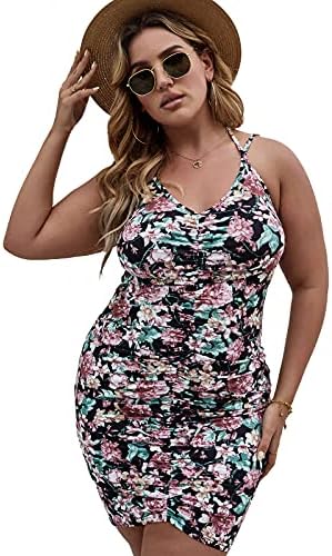 TianmeiHeyi Women's Plus Size deep v-Neck Floral Dress Sleeveless Sexy Bodycon Club Party Dress L-4X