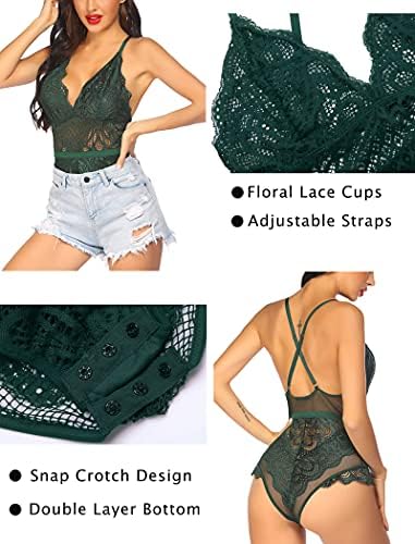 wearalla Women Snap Crotch Bodysuit Floral Lace Lingerie Deep V Teddy Mesh Lingerie One Piece Babydoll